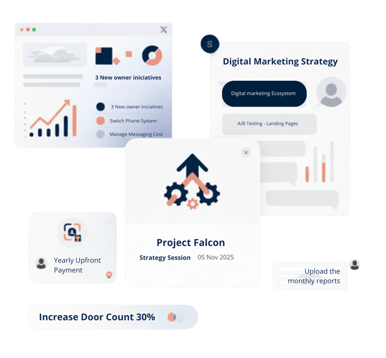 We bring the plan to life, aligning your team, processes, and technology. Our experts handle project management, documentation, and operational setup so you can stay focused on growth.